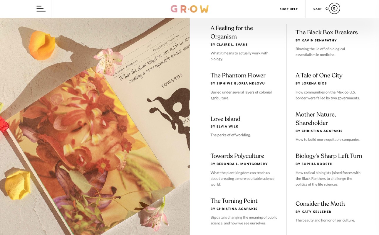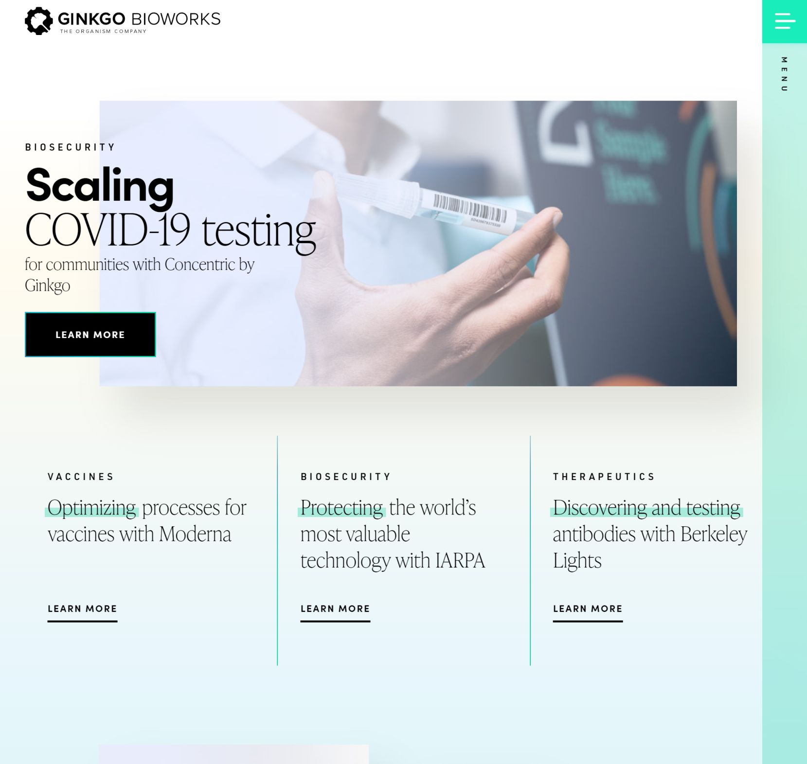Together with the Ginkgo team, we developed the Grow brand, an editorial platform designed to evangelize and celebrate the potential of synthetic biology for the world at large. When Ginkgo quickly responded COVID by launching and scaling Concentric, we partnered with them to bring a new digital brand to market as fast as possible through our collaborative and iterative design and development strategy.