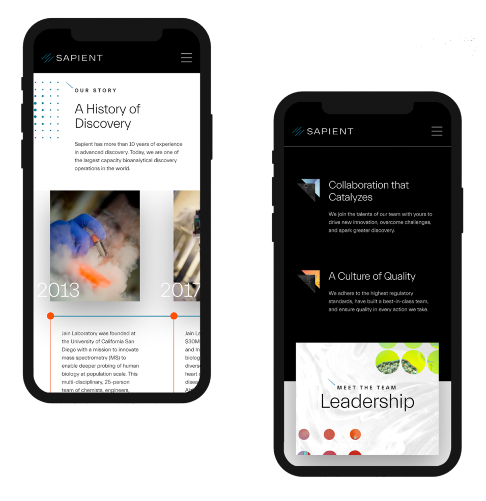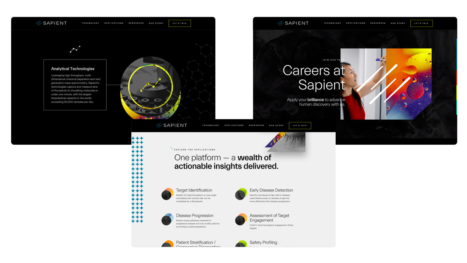 How do you create a digital experience that will make users believe what they had thought was impossible? That’s what we set out to do for Sapient—a biotechnology company that leverages the power of mass spectrometry with massive data sets and actionable health insights across the drug discovery and development spectrum. ICS built a simple and elegant user experience to convey the company’s expertise with complex data at scale. We deployed interactive elements to engage users and encourage a deeper understanding of Sapient’s value proposition. We deployed animation and motion strategically to show rather than tell the story and avoided details that did not serve a greater purpose. The result is a sleek and polished experience befitting a technology-forward industry leader.