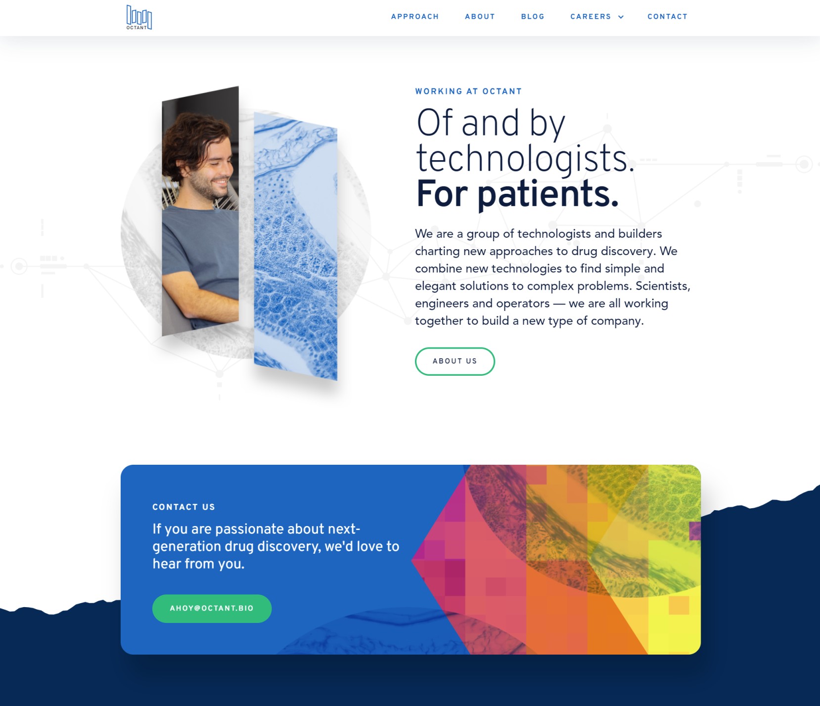 Our discovery work surfaced throughlines that inspired our designers and strategists. Courage is at the heart of Octant. The company’s foundation is built on taking risks that others aren’t willing to take. We paired the idea of courage with their inspired name, Octant. This intentional reference to mapping the unknown aligns Octant’s core science and technology and their approach to company culture. The brand expression of these themes creates an exciting and energetic digital experience.